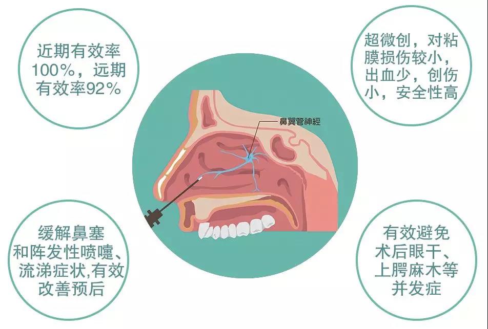 江西省医学科学院附属博大耳鼻咽喉医院熟练开展过敏性鼻炎治疗——高选择性翼管神经节后分支切断术,通过低温等离子技术切断四个分支(上鼻甲支、鼻中隔支、鼻后外侧支、腭鞘管支)之后减轻鼻塞和流清涕症状,达到治愈过敏性鼻炎的目的。
