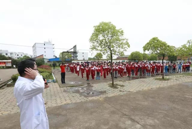 孩子们正在南昌博大耳鼻咽喉医院党支部书记、门诊部主任李克巡的带领下,学做护耳操,保护听力健康。